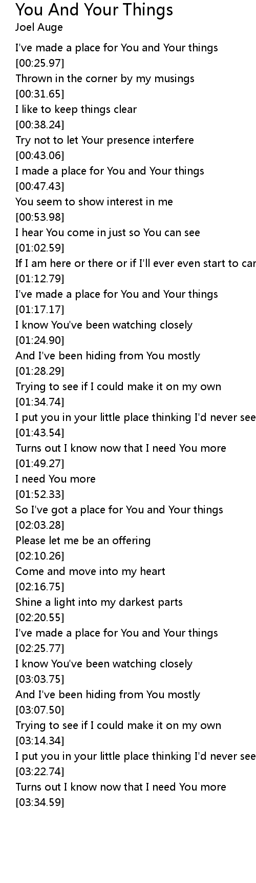 I've made a place for You and Your things |