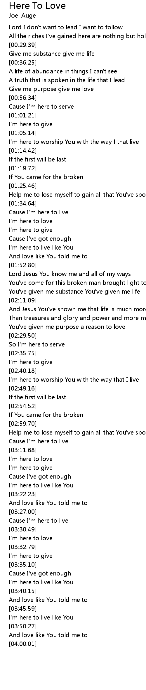 And love like You told me to |
