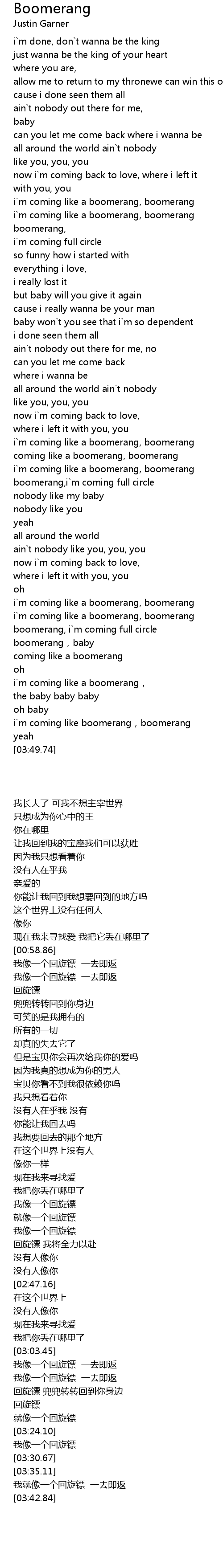 | [02:21.98] | boomerang,i`m coming full circle |