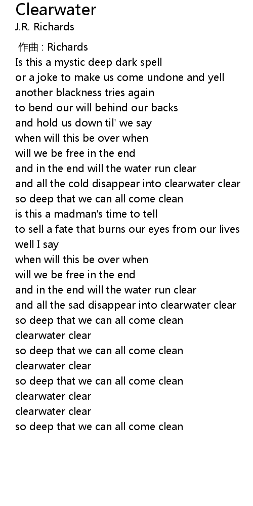 | [02:31.44] | clearwater clear |