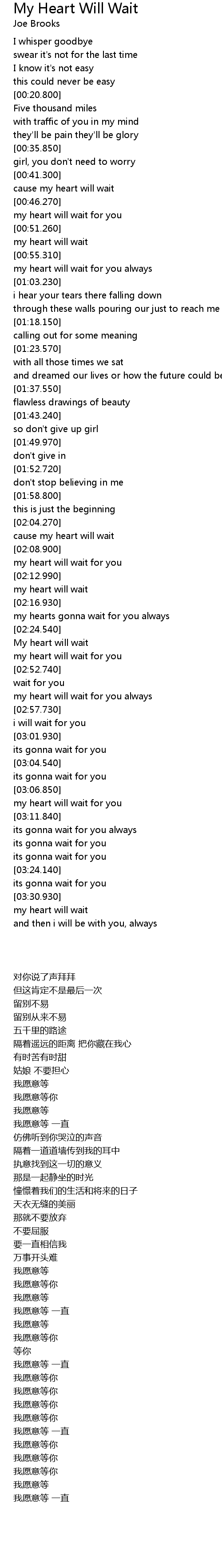 | [03:32.560] | my heart will wait |