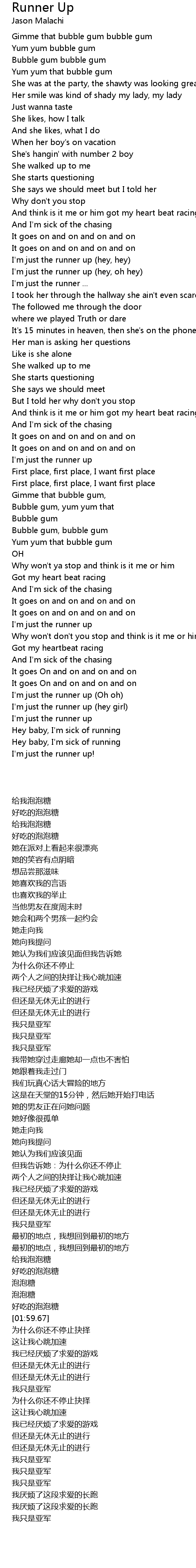 I'm just the runner up (hey, hey) |