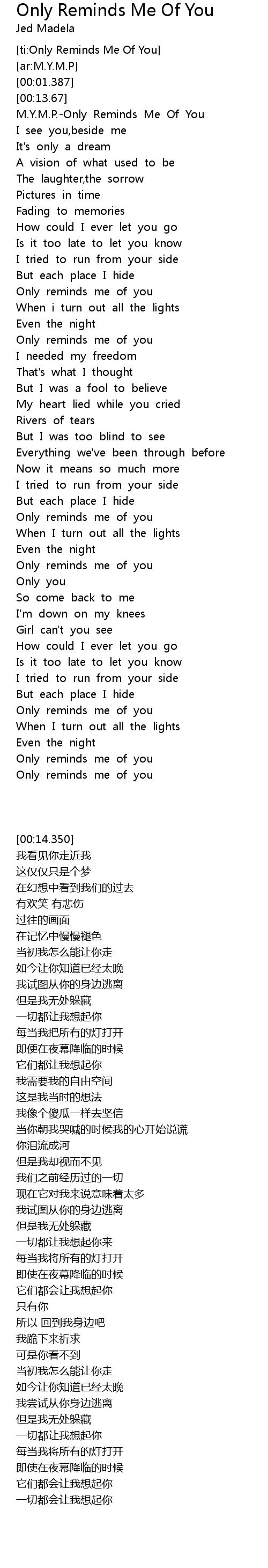 M.Y.M.P.-Only Reminds Me Of You |