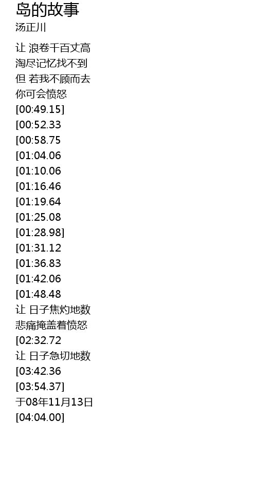 | [02:40.94][00:58.75] | 谁又爱惜这小岛 |