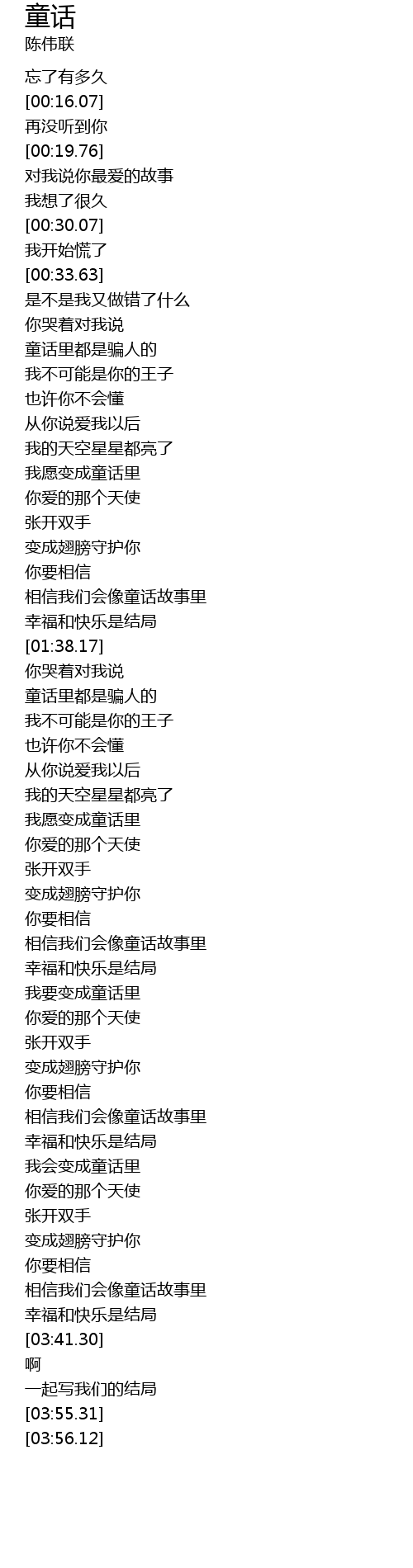 | [02:16.76] | 我愿变成童话里 |