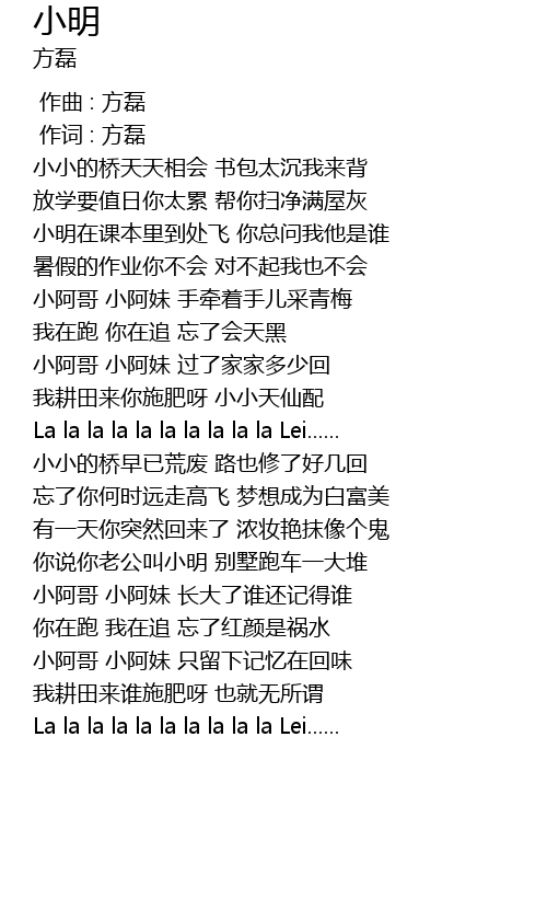 | [01:32.86] | 小阿哥 小阿妹 长大了谁还记得谁 |