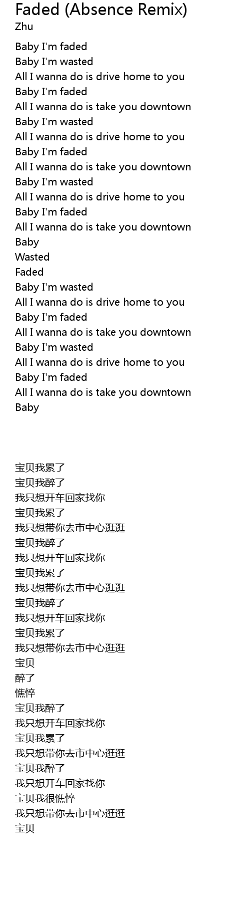 Baby I'm faded |