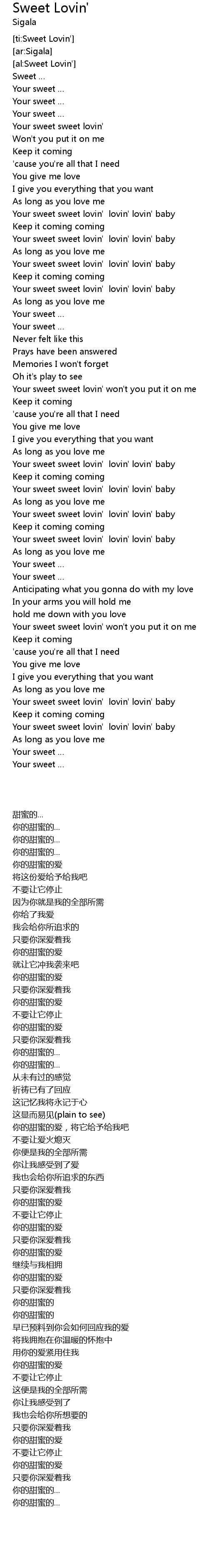 | [03:19.91] | Your sweet sweet lovin' lovin' lovin' baby |