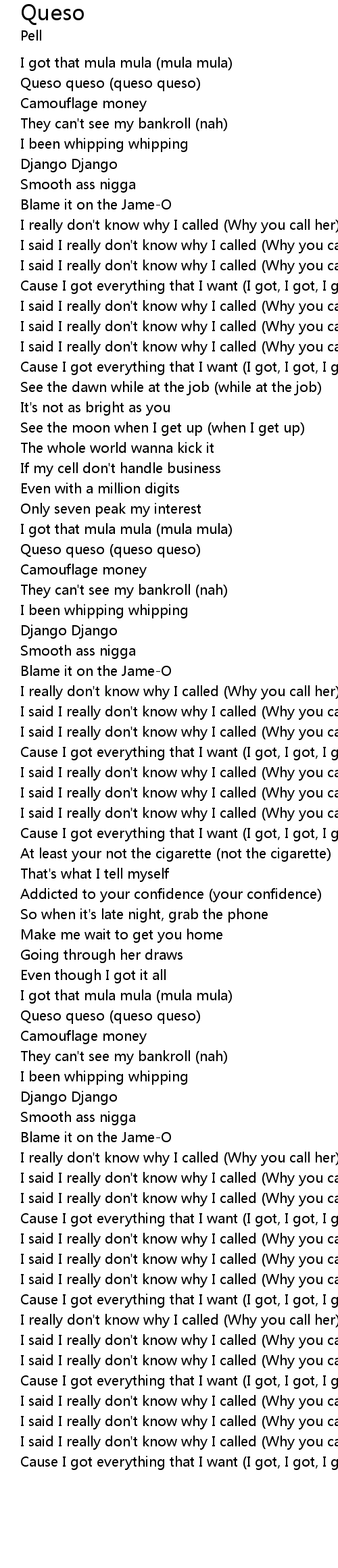 | [01:08.42] | Queso queso (queso queso) |