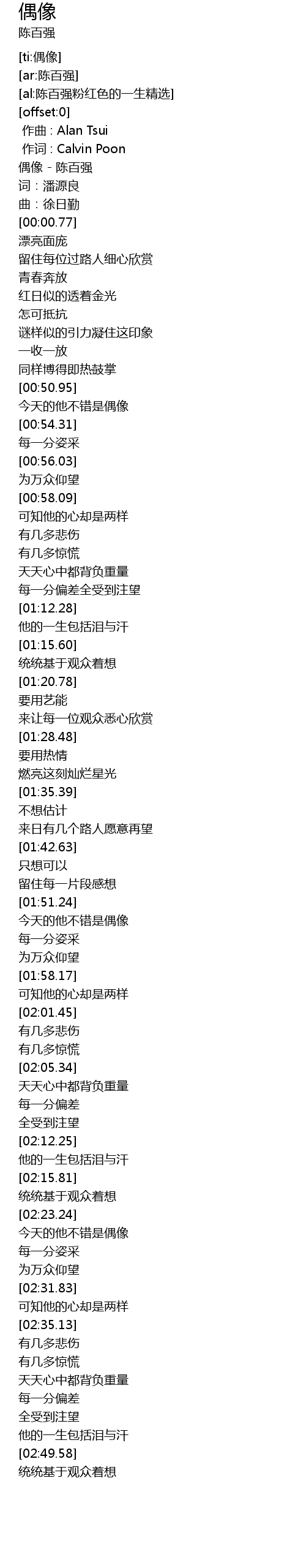 | [00:00.08] | 偶像 - 陈百强 |