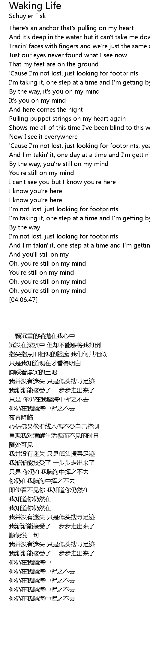 'Cause I'm not lost, just looking for footprints |