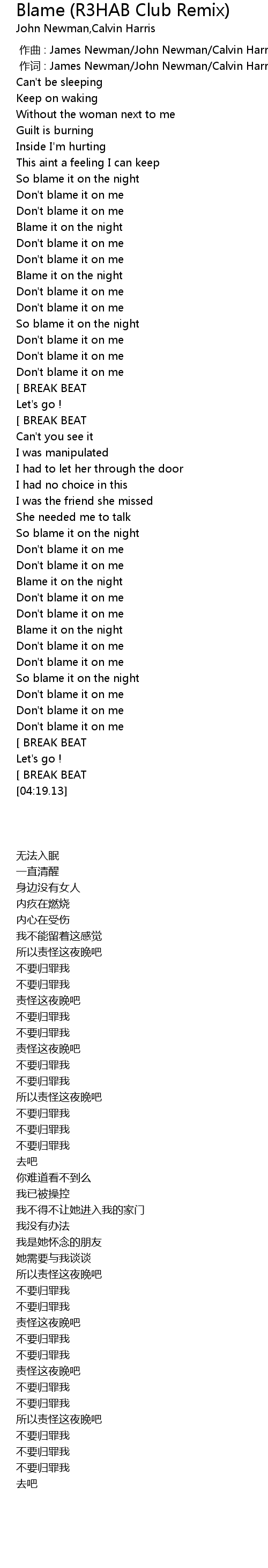 | [00:00.00] | 作曲 : James Newman/John Newman/Calvin Harris |