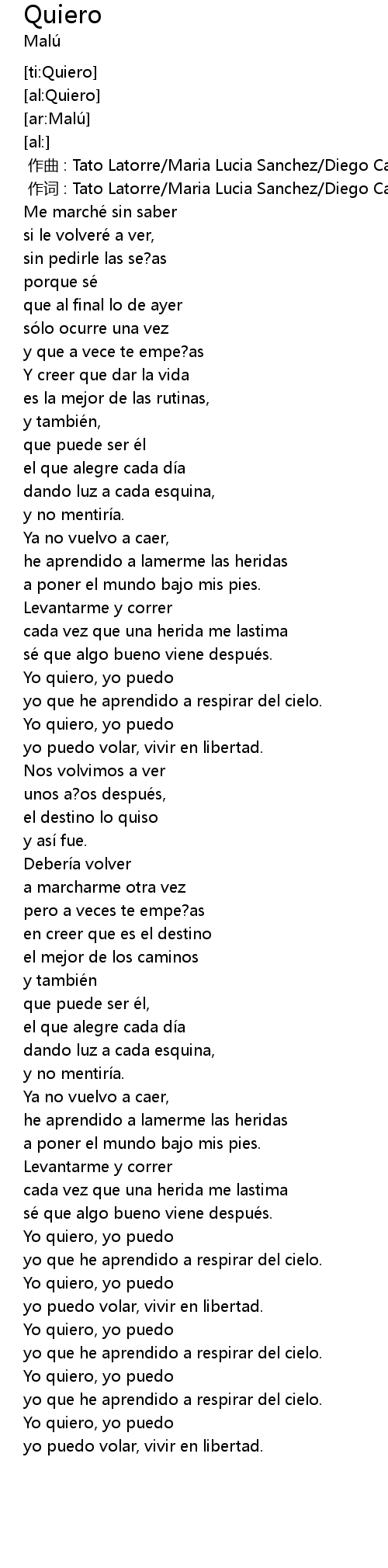 | [00:01.00] | zuò cí : Tato Latorre Maria Lucia Sanchez Diego Cantero |