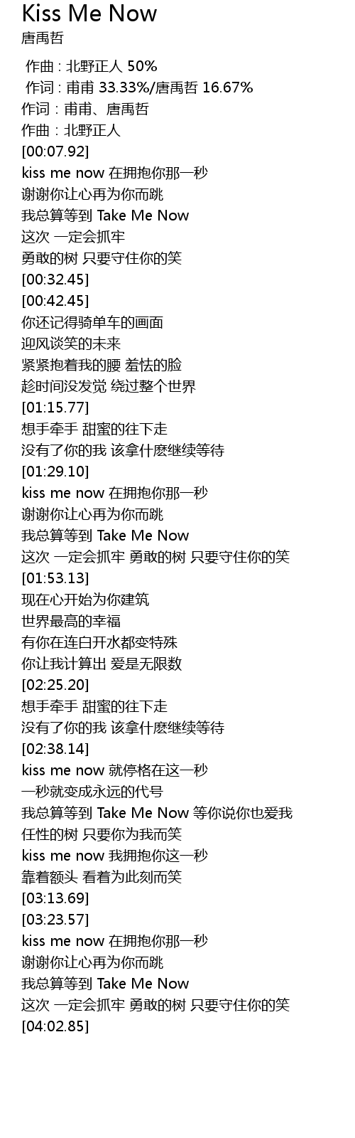 | [03:38.62] | kiss me now zai yong bao ni na yi miao |