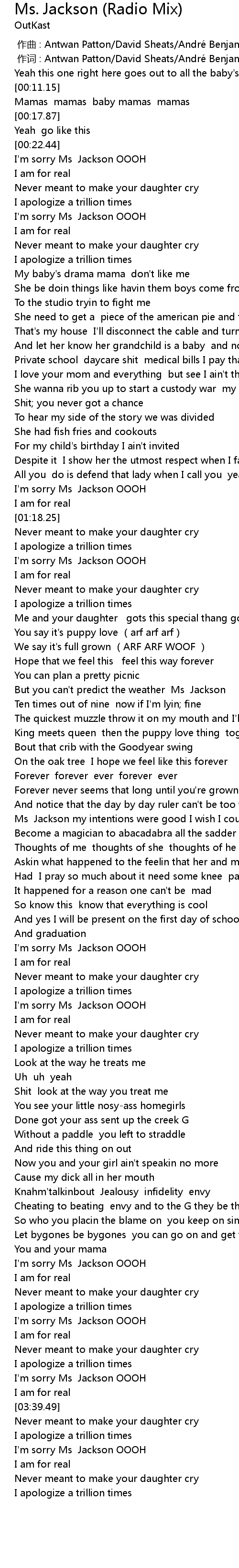 | [00:33.78] | I'm sorry Ms Jackson OOOH |