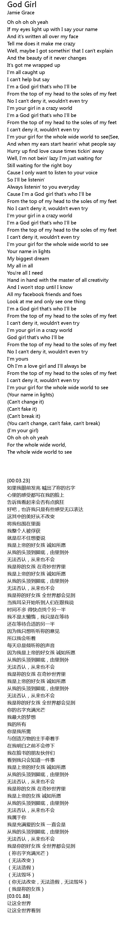 Cause I'm a God girl that's who I'll be |