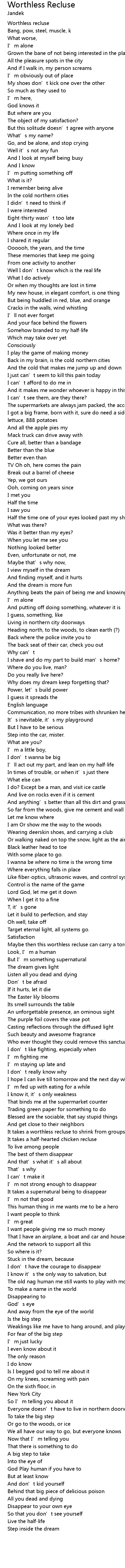 | Song | Worthless Recluse |