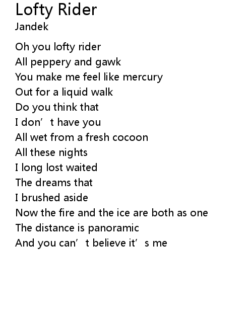 | Oh you lofty rider | |
