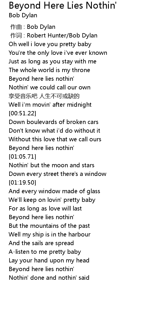 | [00:01.00] | 作词 : Robert Hunter/Bob Dylan |