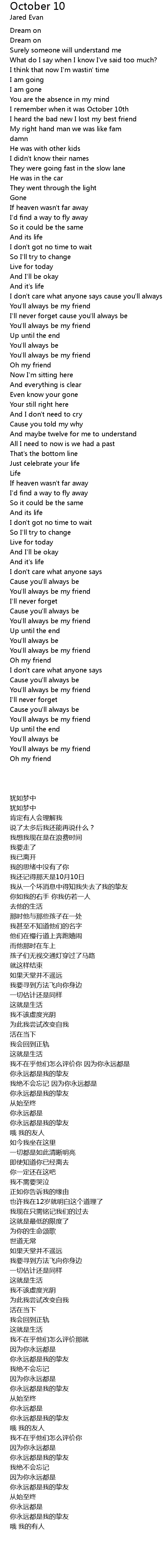 October 10 Lyrics
