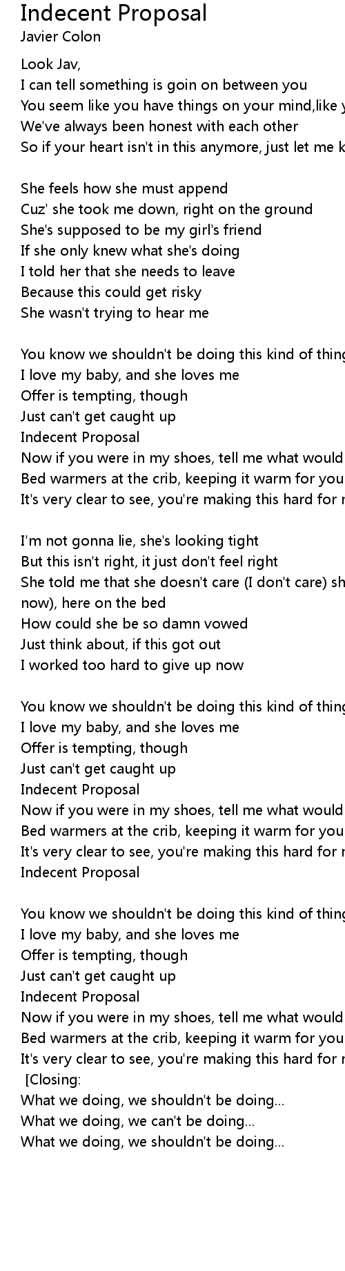 Indecent Proposal [Repeat Chorus] [Closing:] |