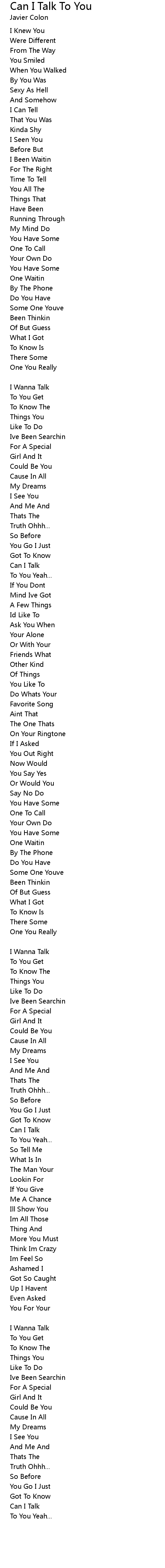| Song | Can I Talk To You |