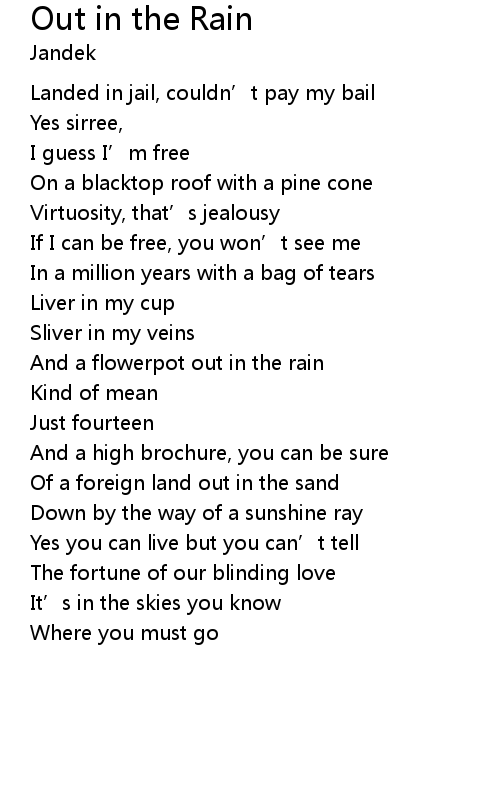 | Song | Out in the Rain |