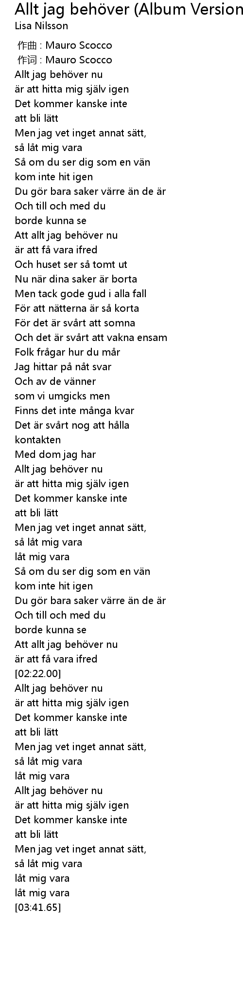 | [00:15.69] | Men jag vet inget annat sätt, |