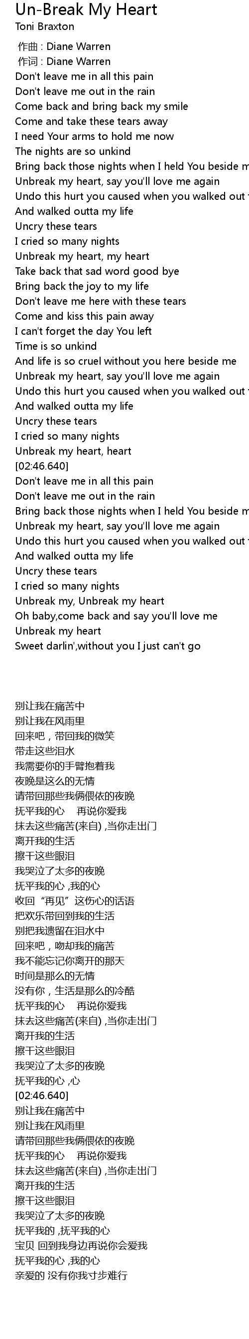 | [03:37.730] | Unbreak my, Unbreak my heart |