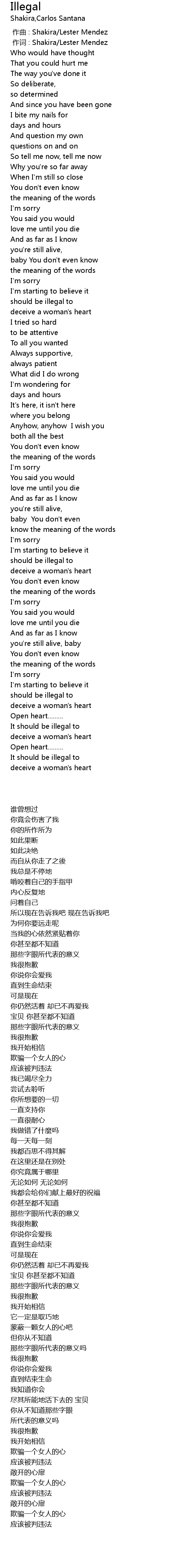 | [00:00.00] | 作曲 : Shakira/Lester Mendez |