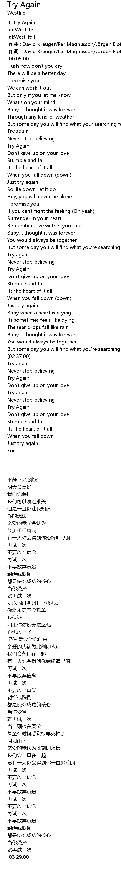| [03:01.00] | Try again |