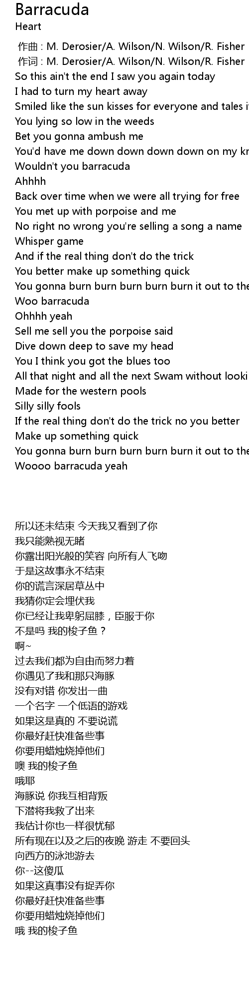 | Song | Barracuda |