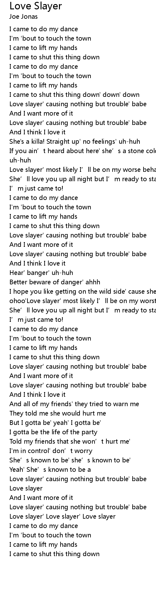 | [02:06.52] | ohoo'Love slayer' most likely I’ll be on my worst behavior' oh ooh |