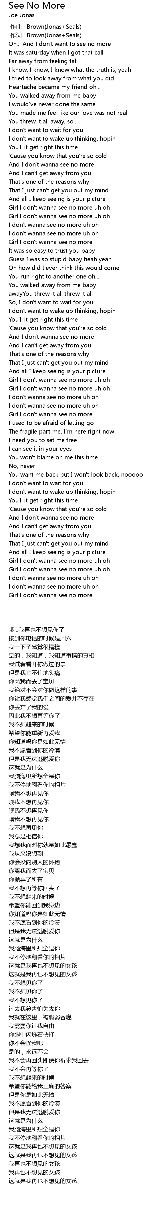 | [00:01.00] | 作词 : Brown(Jonas+Seals) |