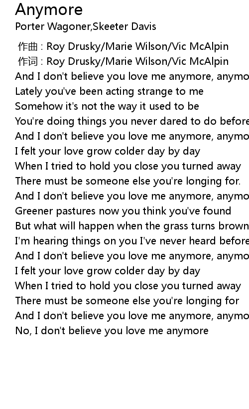 | [00:38.77] | And I don' t believe you love me anymore, anymore |