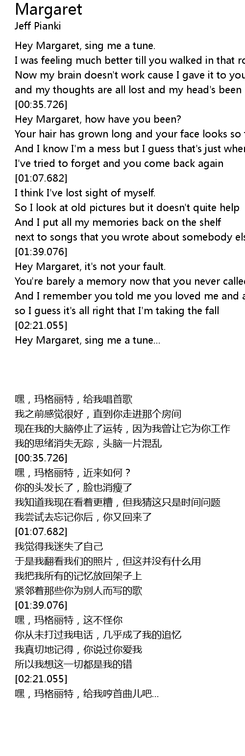Hey Margaret, sing me a tune. |