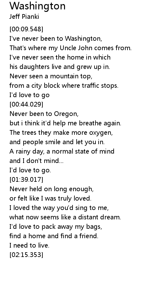 I've never been to Washington, |