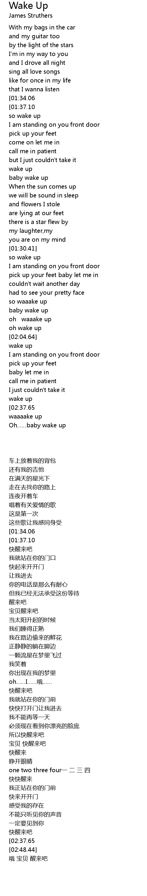 | [02:34.04][02:37.65][02:41.18] | baby wake up |