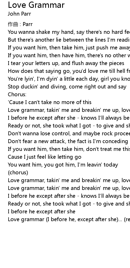 | Love grammar, takin' me and breakin' me up, love grammar, the grammar of love | |
