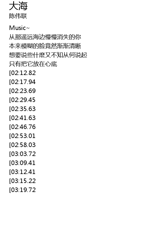 | [00:44.03][02:12.82] | 茫然走在海边看那潮来潮去 |