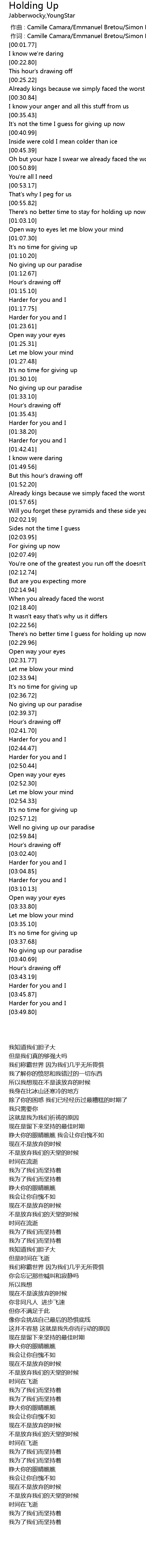 | [00:55.95] | There' s no better time to stay for holding up now |