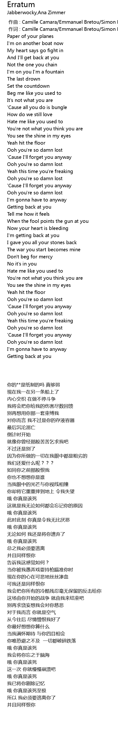| Song | Erratum |