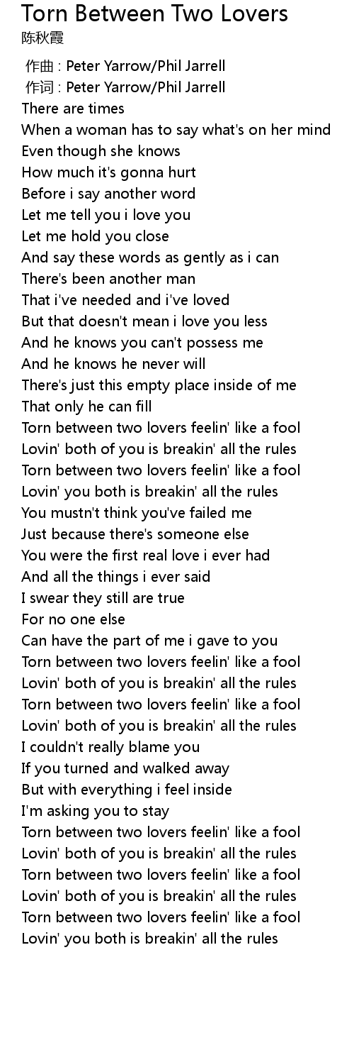 | [02:18.29] | Torn between two lovers feelin' like a fool |