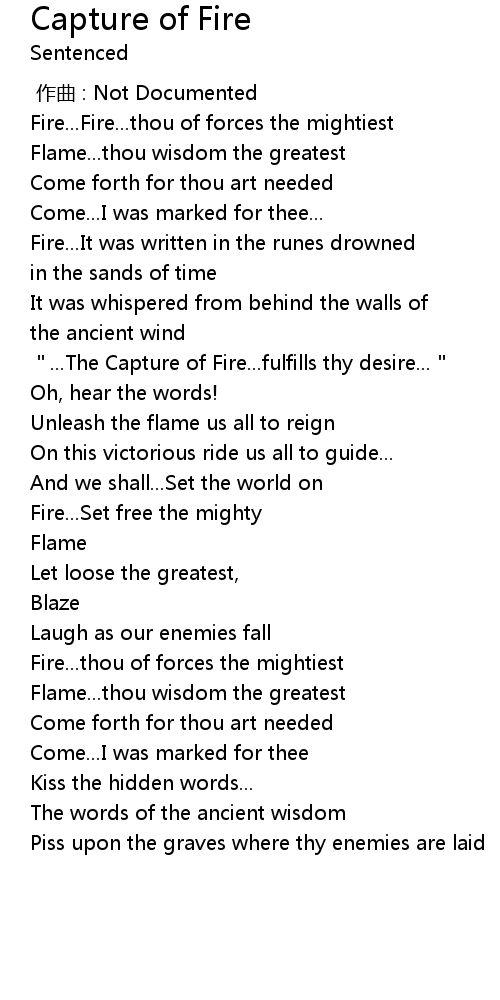 | [02:47.66] | "...The Capture of Fire...fulfills thy desire..." |