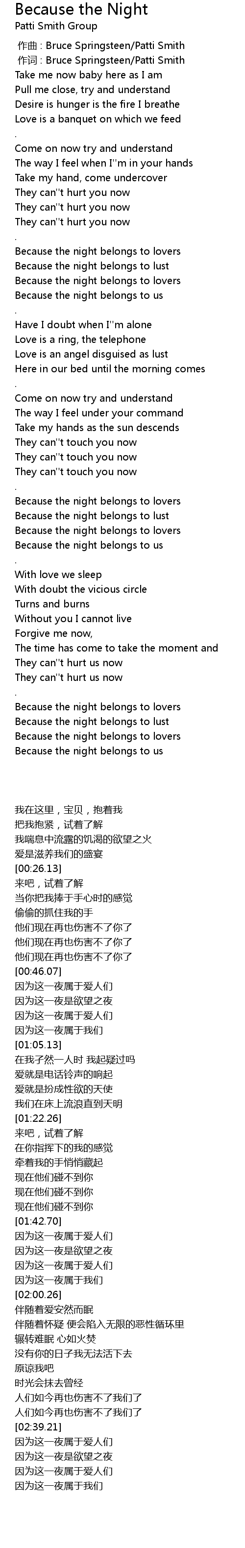 | [00:00.00] | zuò qǔ : Bruce Springsteen Patti Smith |