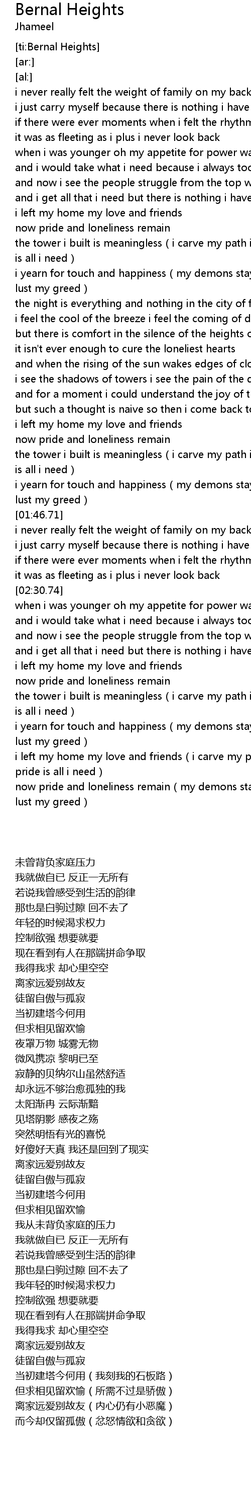 | [02:53.84] | the tower i built is meaningless(i carve my path in stone my pride is all i need) |
