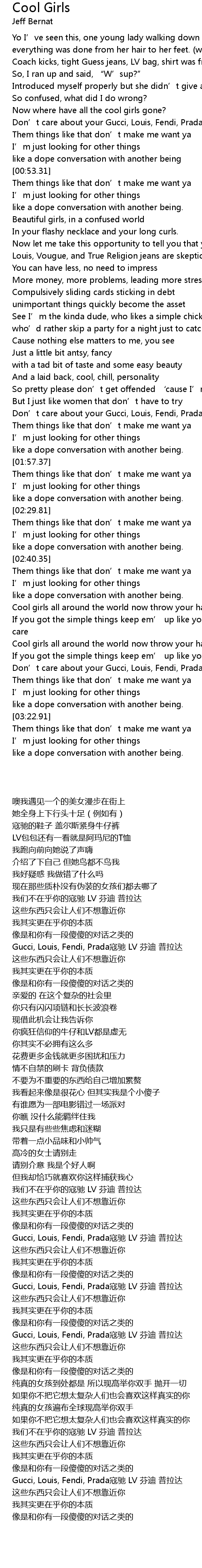 | [03:12.36] | Don’t care about your Gucci, Louis, Fendi, Prada |