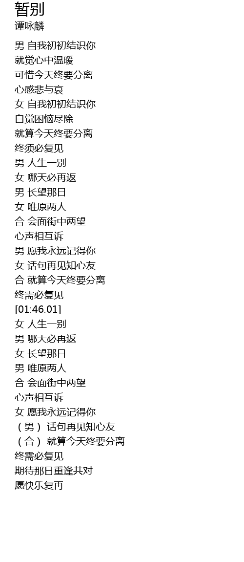 | [01:35.03] | hé jiù suàn jīn tiān zhōng yào fēn lí |