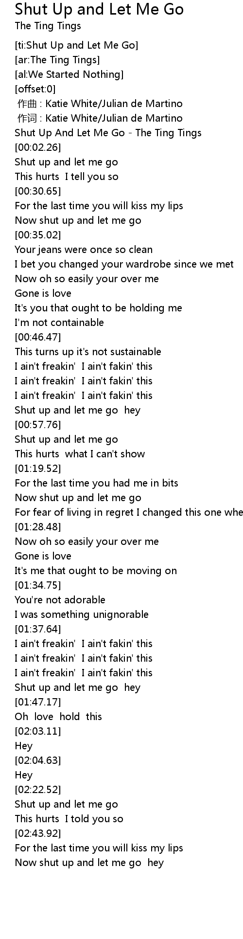 | [02:40.58] | Shut up and let me go |