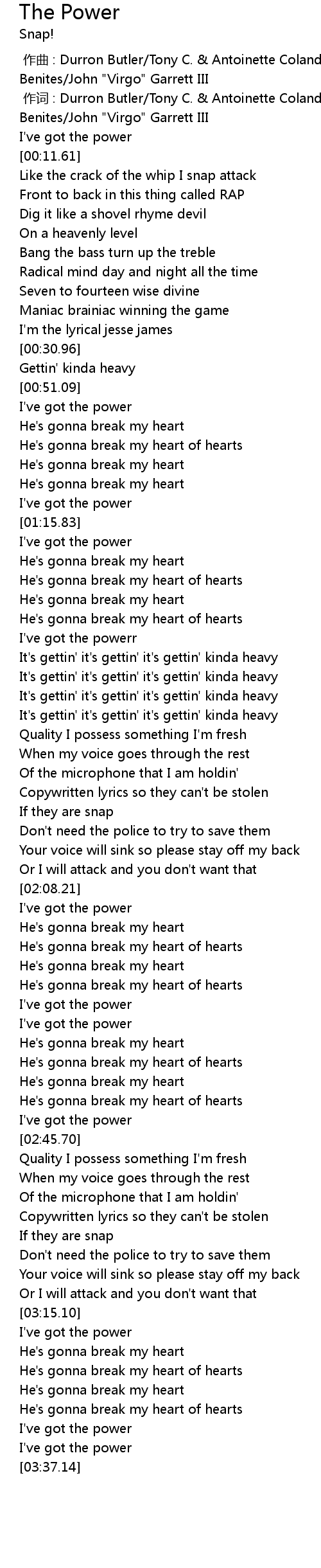 | [02:38.45] | I've got the power |
